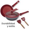 • MÁS GRANDE. El Master Set crece 8 piezas, para que tengas todo lo que necesitas en tu cocina: sartenes, cacerola, comal antiadherente, tapa de vidrio y accesorios de silicón.