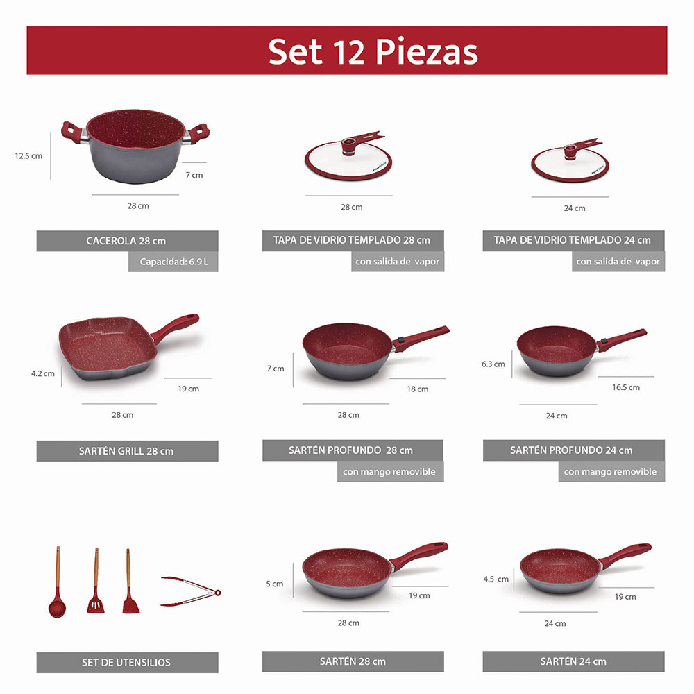 • TODO LO QUE NECESITAS. El Flavorstone Ligth Family Set contiene: 3 sartenes, 2 sartenes con mango removible, 1 cacerola, 2 tapas de vidrio y 4 accesorios de silicón. ¡No necesitarás nada más para cocinar! Deja de comprarlo todo por separado y ahorra.