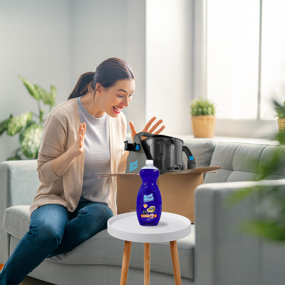 Líquido de limpieza especialmente formulado para generar poca espuma garantizando una limpieza efectiva en los textiles del hogar además ayuda al buen funcionamiento de su SPOT BLAST.