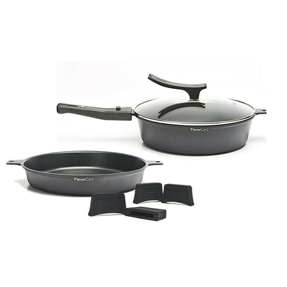 Flavorstone es apto para utilizarse para muchos propósitos gracias a su mango removible, que proporciona múltiples opciones; Llévalo de la estufa al horno y después a la mesa sin ninguna dificultad.