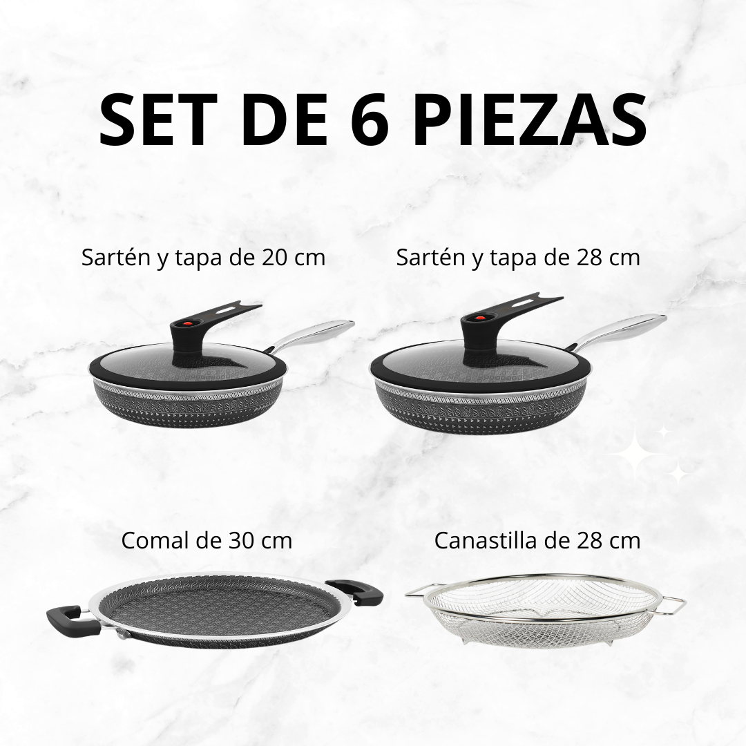 Juego Sartenes C/tapa Acero Inoxidable Antiadherente Samurai Color Negro 6 piezas