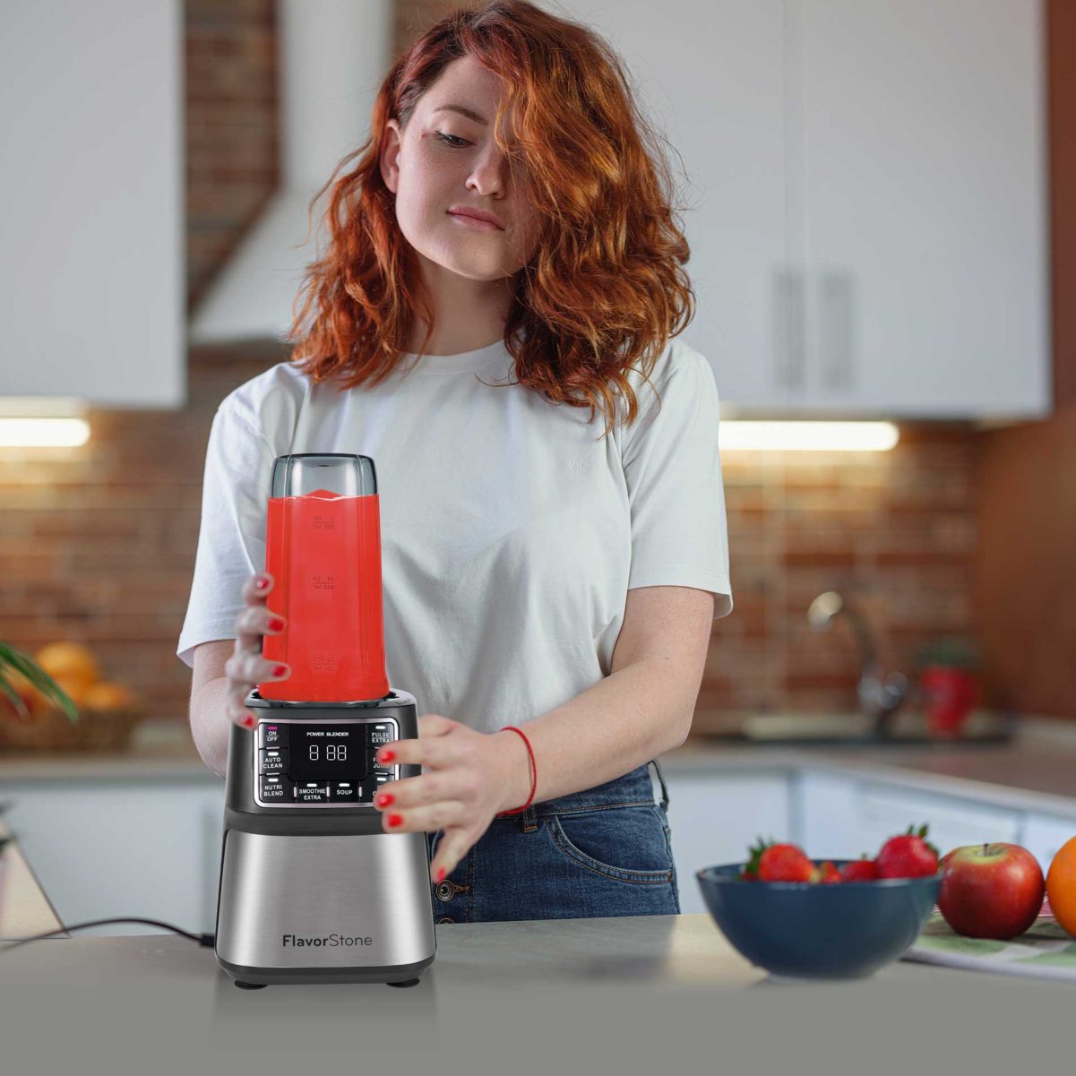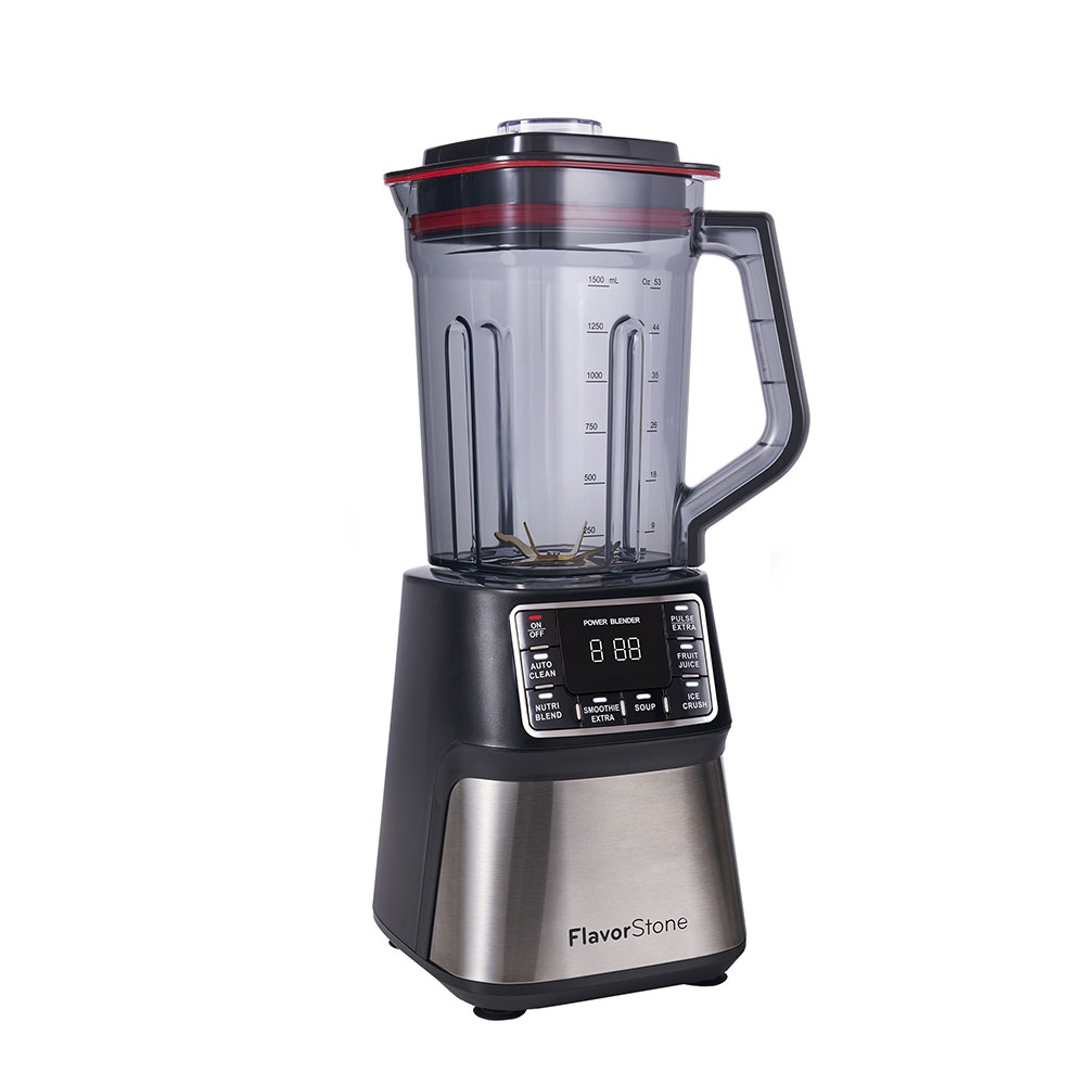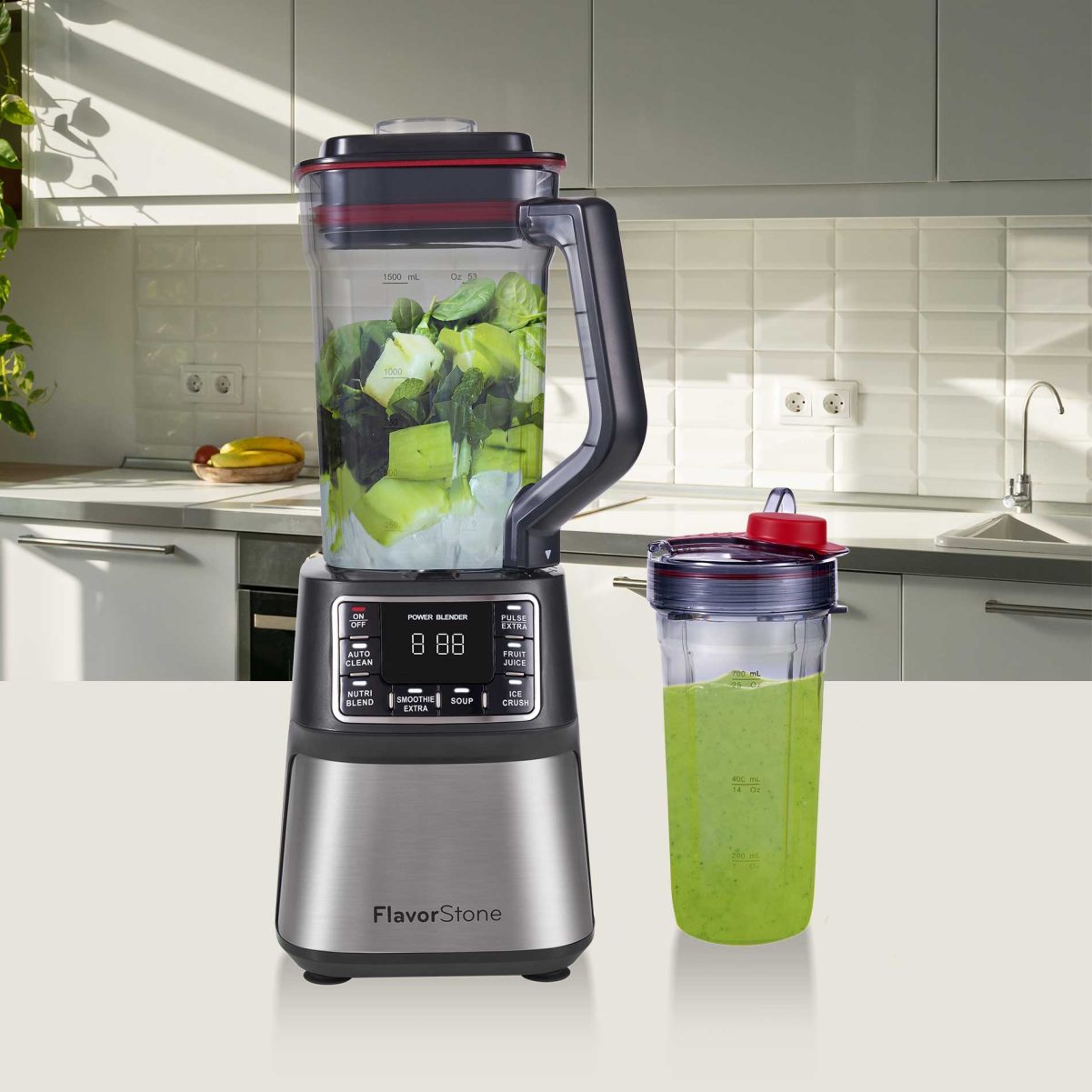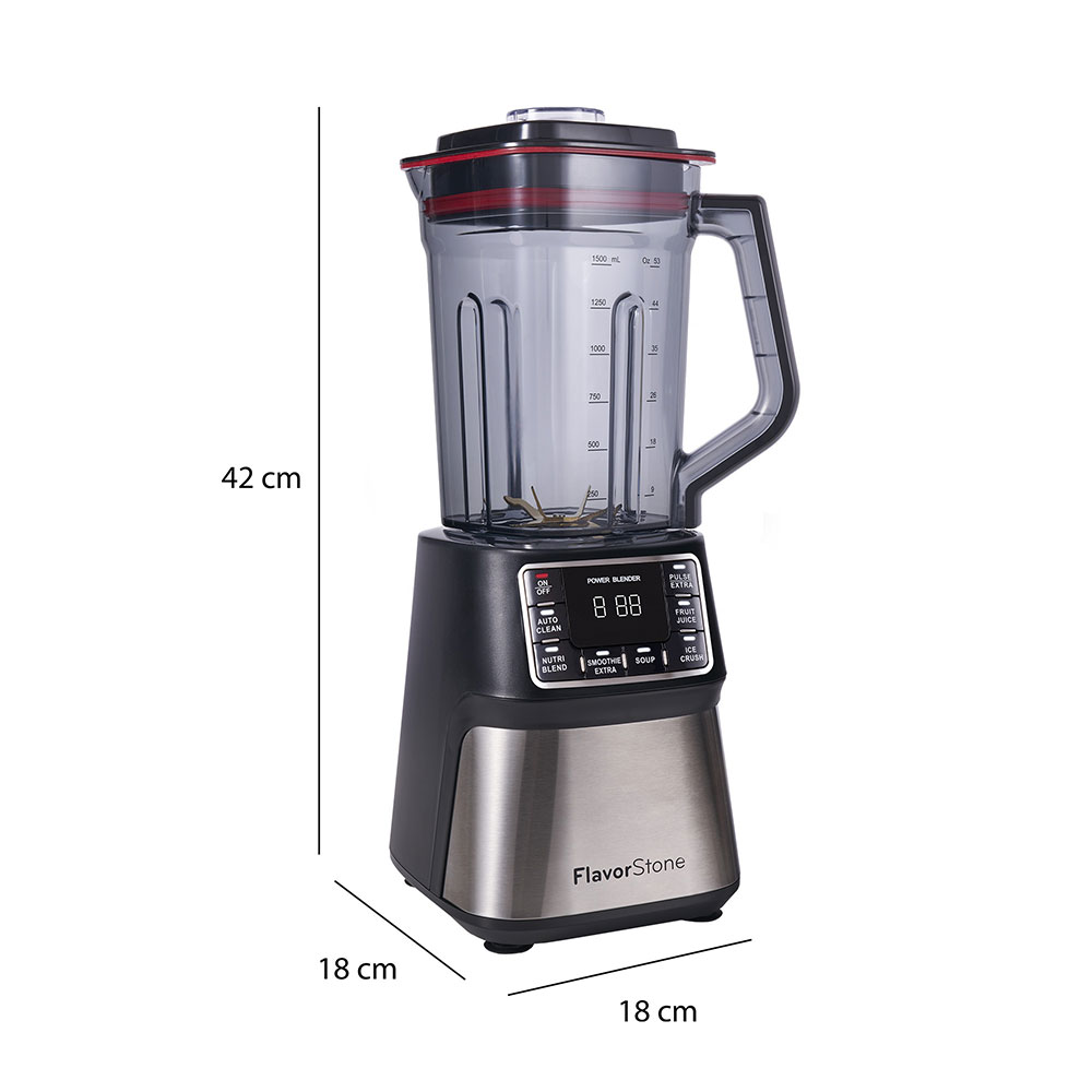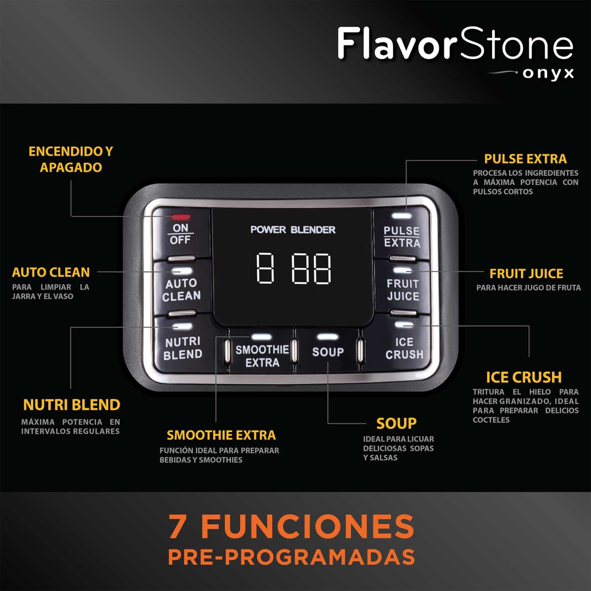 Prepara smoothies, jugos, salsas y sopas ¡en minutos! Con la licuadora FlavorStone Onyx cocinar será mucho más sencillo. Esta licuadora trabaja rápidamente para triturar hielo, para preparar deliciosas mezclas y ¡hasta para limpiarse sola! Gracias a sus 7 funciones preprogramadas amarás tu tiempo en la cocina: pulse extra, jugo de fruta, triturar hielo, sopa, smoothie extra, nutri blend y auto limpieza.