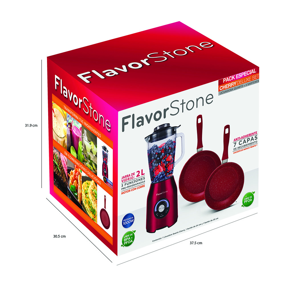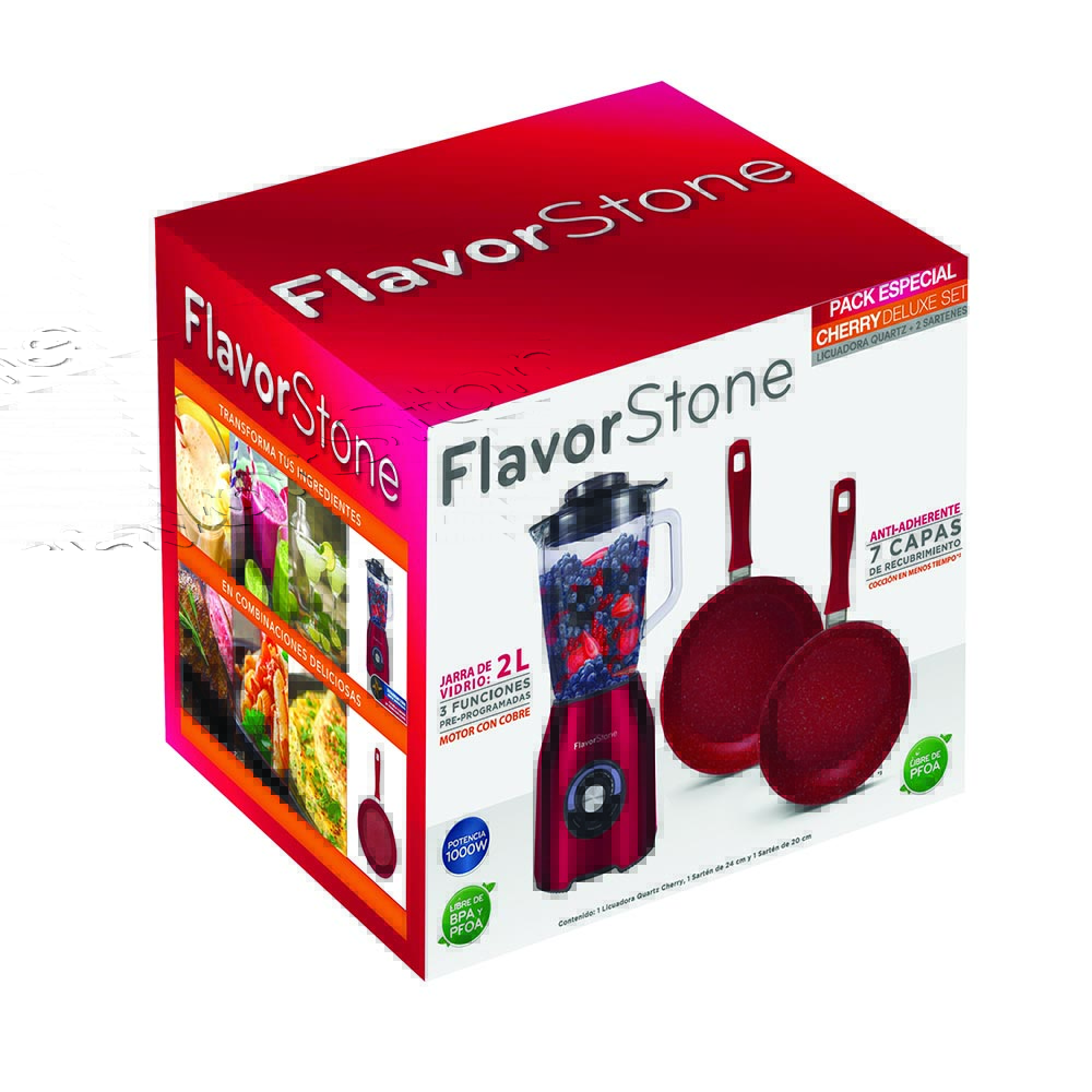 Licuadora Flavorstone Quartz Cherry Deluxe + 2 Sartenes