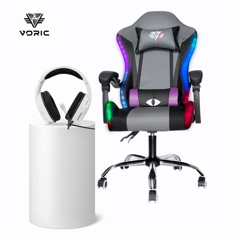 Silla Gamer con Luz Led y Audífonos con Micrófono by Voric